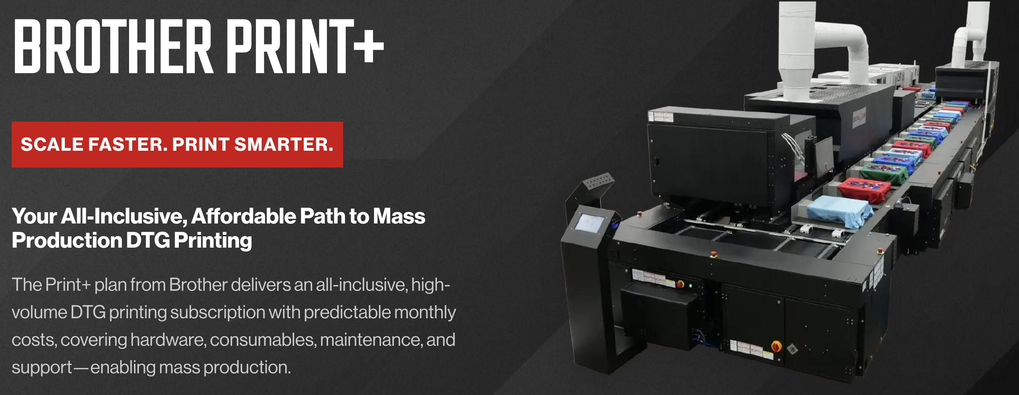 “Print+ removes traditional barriers for high-volume decorators looking to scale mass production DTG,” said Lawrence Davenport, vice president of the Industrial Products Division at Brother International Corporation. “By combining automation, industrial-grade hardware and comprehensive support into one predictable monthly plan, we’re giving businesses a smarter, more flexible way to grow.”