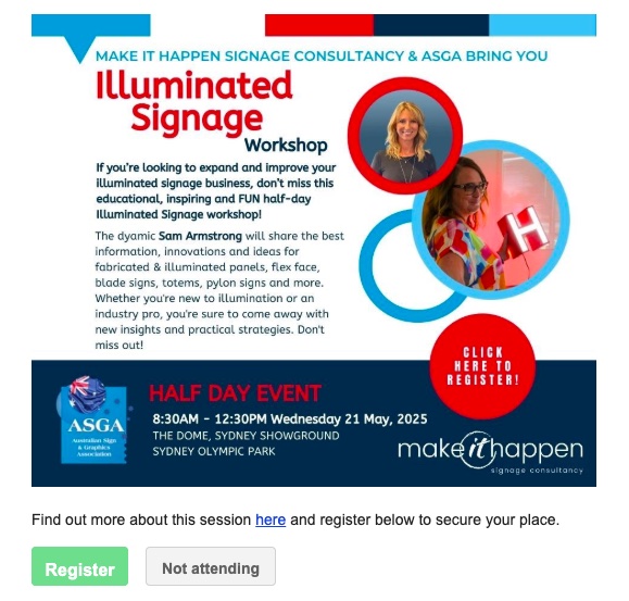 Event Reminder: Illuminated Signage Workshop, 21 May 2025